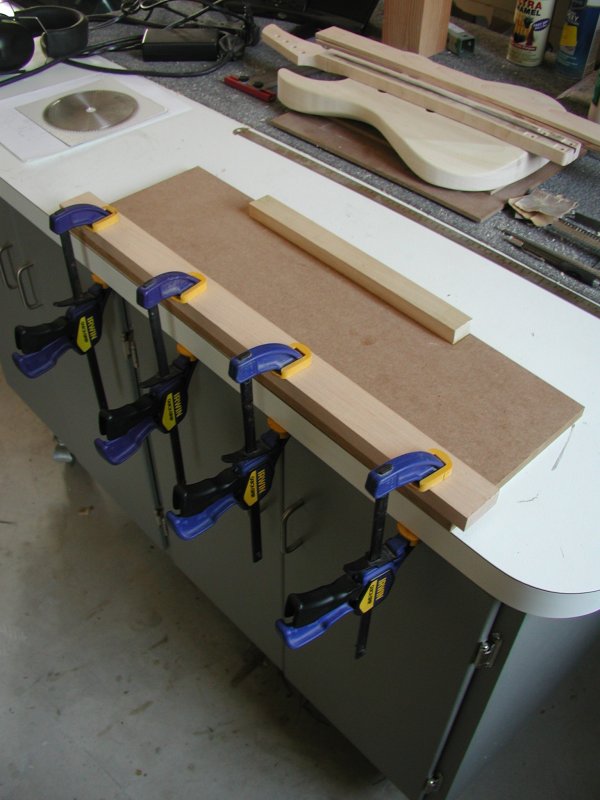 I was originally going to use a guitar fretboard and cut it off at the second fret, but decided it would be a good long term investment to get a fret slotting saw that fits a table saw. The slotting saw will allow me to make fretboards with custom scale lengths. I will also be able to use of whatever wood is available or desired for the fretboard. The maple fretboard made for this project cost less than $1 in wood and took very little time to make.